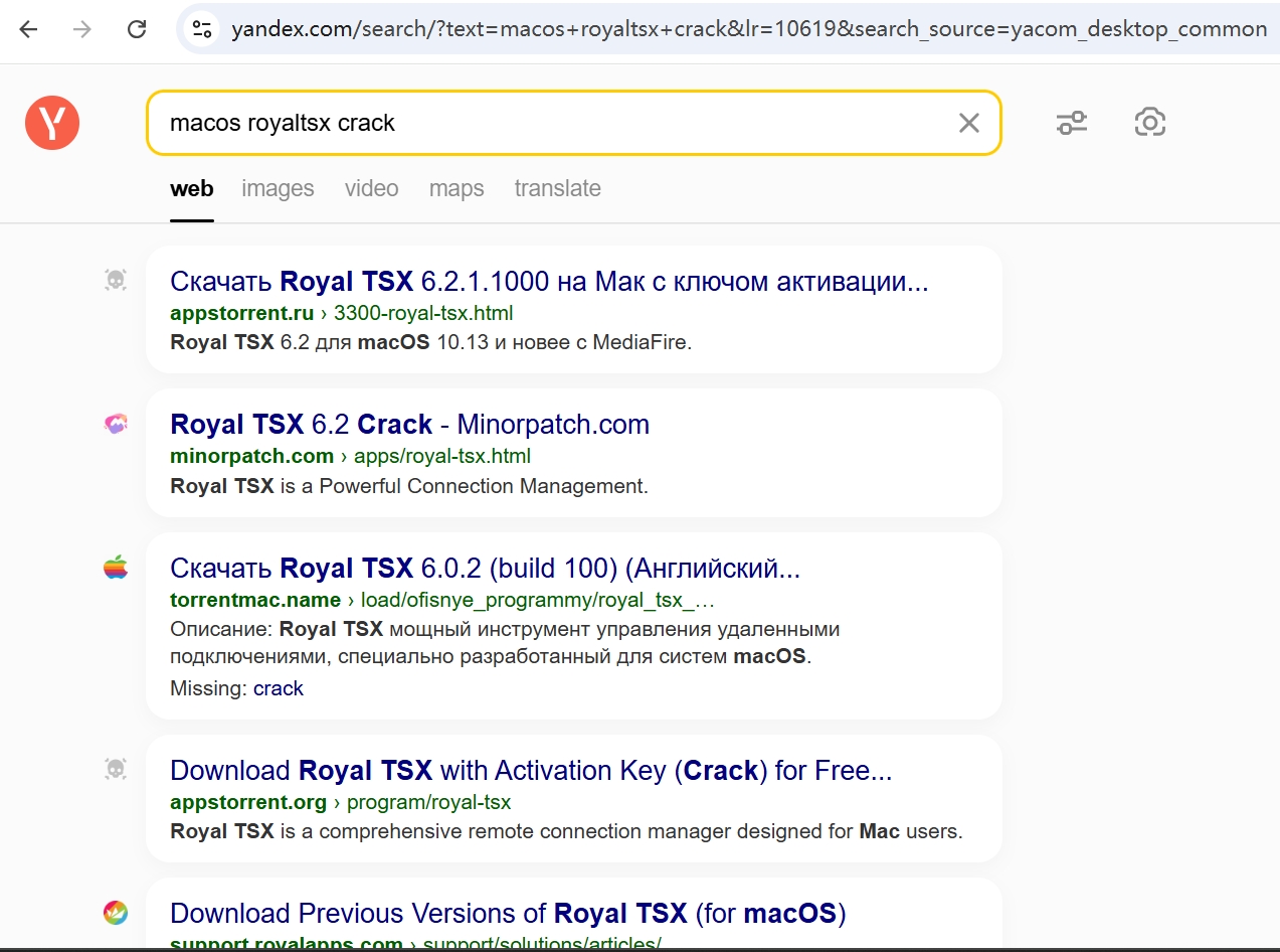 在搜索框中输入想要搜索的软件名,并在后面加入crack或符合当地语言的“破解”词语
